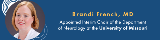 Brandi French, MD, has been named the interim chair of the Department of Neurology at the University of Missouri in Columbia, MO. After graduating medical school at the University of Kansas, Dr. French went to the University of Missouri more than 20 years ago as a neurology resident and then joined the faculty, serving in multiple roles including Chief Resident, Vice Chair for Clinical Affairs, Medical Director of the Neurosciences Unit and the Missouri Stroke Program, and Program Director for the Vascular Neurology fellowship. She succeeds Dr. Pradeep Sahota, who retired effective May 31 after being chair for the past 21 years.
