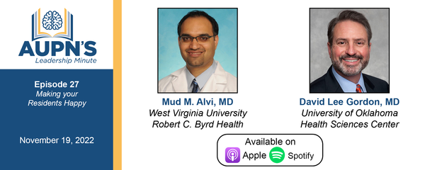 The new AALN Leadership Minute for November provides useful advice for both chairs and residency program directors: “Making Your Residents Happy.” This month’s program is presented by veteran resident-whisperer, David Lee Gordon, MD, Professor and Chair of Neurology at the University of Oklahoma Health Sciences Center, and introduced by Muhammad “Mud” Alvi, Assistant Professor of Neurology at West Virginia University Robert C. Byrd Health Center. According to Dr. Gordon, learner happiness facilitates learner achievement, and unhappy learners don’t learn. Making residents happy in the workplace requires that leaders balance learners’ wants and needs, adopt a collaborative leadership style and habits, and explain and facilitate learners’ achievement of “flow”, the learning condition when enjoyment and maximal concentration occur and the material is neither too difficult or too easy. It is also critical not to tolerate “bad apples” whose behavior or attitude spoils the learning experience.