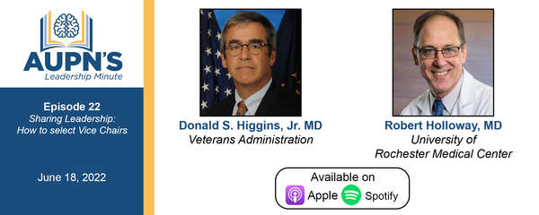 A new AALN Leadership Minute has been posted for June 2022, entitled “Sharing Leadership -How to Select Vice-Chairs.” This month’s session, hosted by Dr. Donald Higgins, features Dr. Robert Holloway, Chair of Neurology at the University of Rochester Medical Center in Rochester, NY. Dr. Holloway provides the rationale and strategies for choosing Vice-Chairs, focusing on how to develop, recruit and nurture this team for success. As departments of neurology become more administratively complex, one of the most important factors in the success of a Chair is the skill and strength of the Vice Chair leadership team. Effective delegation of authority can help develop the careers and talents of your faculty in addition to extending your capabilities as chair.
