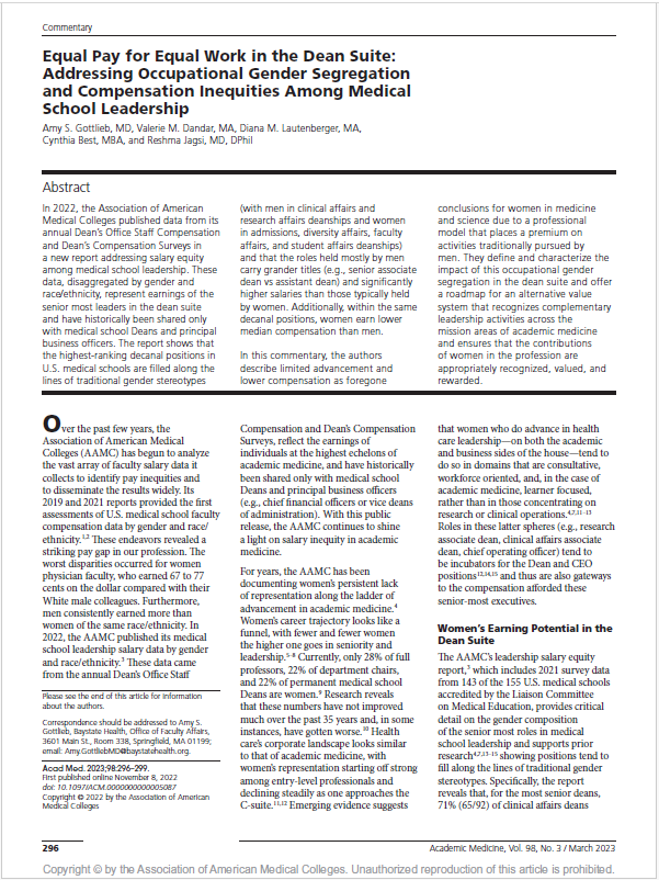 Equal Pay for Equal Work in the Dean Suite: Addressing Occupational Gender Segregation